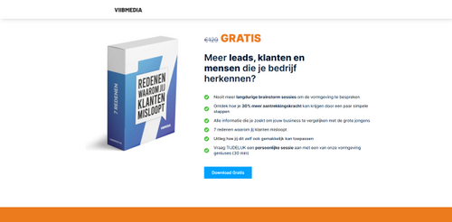 Ik ben begonnen met het maken van een landingspagina waar de bezoekers op uit zullen komen. Deze is conversie gericht gemaakt met maar 1 doel: De training downloaden. De pagina is zo opgebouwd om de bezoeker over te halen om actie te ondernemen.