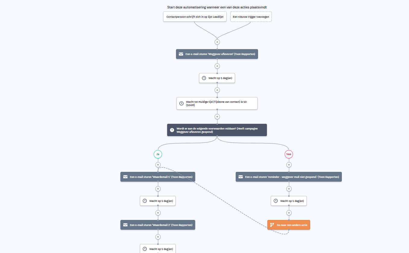 Daarna ben ik aan de slag gegaan om een email funnel op te zetten in mail blue. Hierdoor zal iedereen die de training download automatisch op een mailinglijst komen. Er staan een aantal standaard waarde mails ingesteld die de leads zullen ontvangen. Aan het eind van de funnel krijgen wij een bericht dat de lead alle mail heeft geopend.